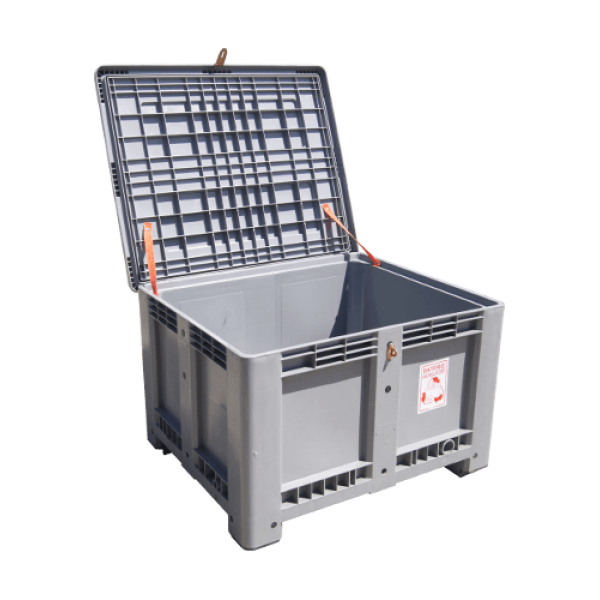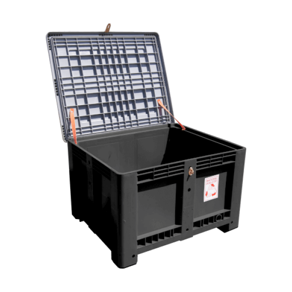 An additional security feature in the used battery container is a solid lockable lid.