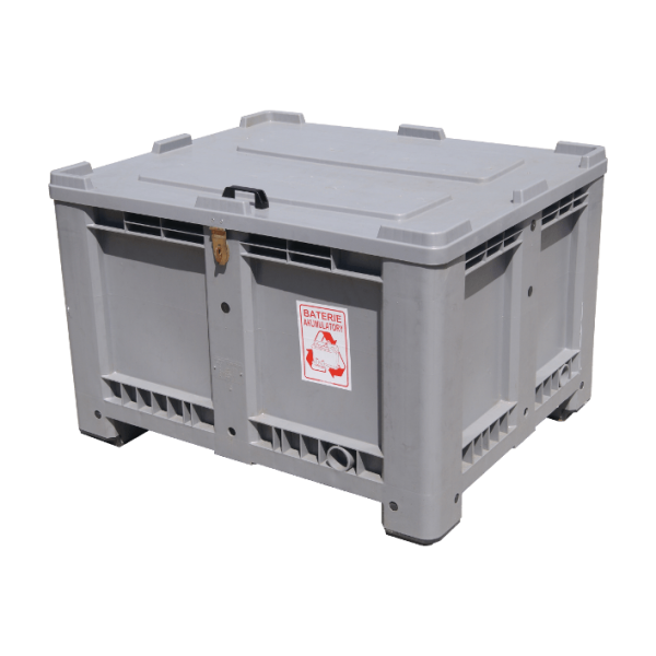 The container is made of polyethylene, making it resistant to mechanical damage and harmful effects of chemical agents. The reinforced construction of the container ensures stable waste placement. The base of the used battery container is equipped with skids, so the load capacity of the entire battery pallet box is even 500 kg.