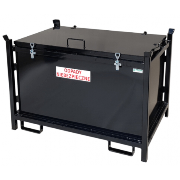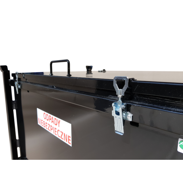 The presented hazardous waste container has an ADR certificate authorizing the storage and transport of hazardous solid waste and bulk materials. Users can also use it for storing used lithium batteries and other problematic goods. However, it is the owner's obligation to always comply with the ADR guidelines for packing a specific substance. The hazardous waste container must be subjected to regular periodic inspections every 2.5 years.
