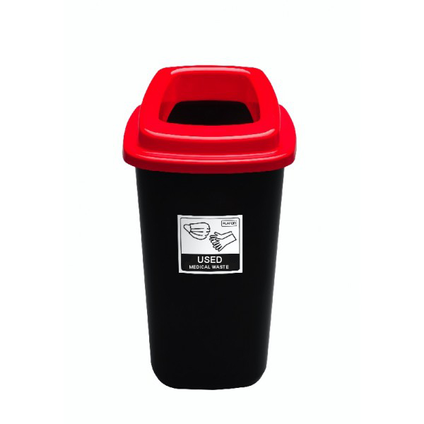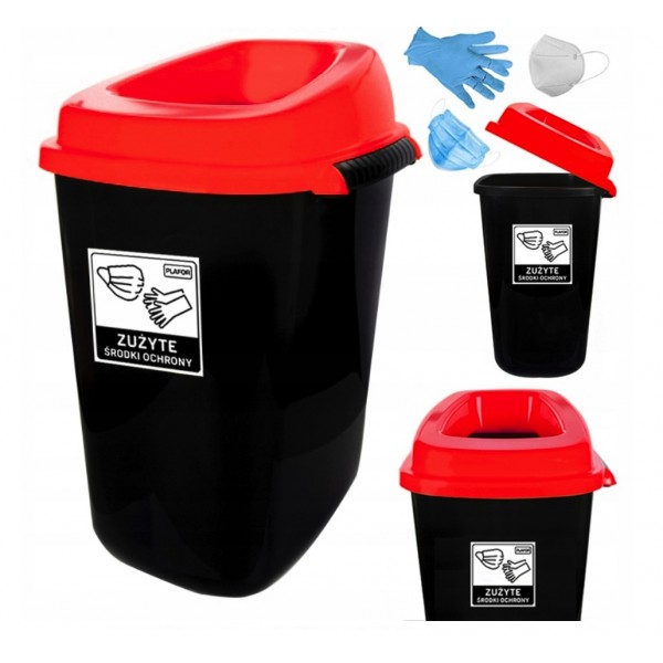 Bin for used masks with a capacity of 28 liters is a combination of a black housing and a red lid, whose color corresponds to the collected fraction (hazardous waste). On the front, it has a large information sticker, to prevent unnecessary mistakes.