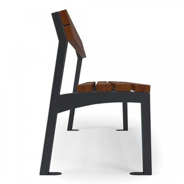 The city bench has sheet metal elements available in 5 RAL palette colors and softwood slats available in 2 stylistic versions: rosewood or light oak. It allows for screwing to the substrate or concreting.