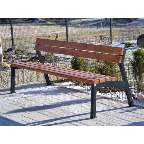Timeless wooden bench with backrest for the city and park  Bench with backrest Ryga combines t..