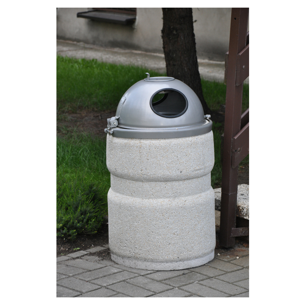 The concrete waste bin is equipped with a dome-shaped canopy made of galvanized sheet metal powder coated. The solution is resistant to damage. The entire project does not deteriorate under the influence of atmospheric factors - UV radiation, rain, snow or extreme temperatures. The concrete bin with a canopy does not rust and maintains an aesthetic appearance for years.