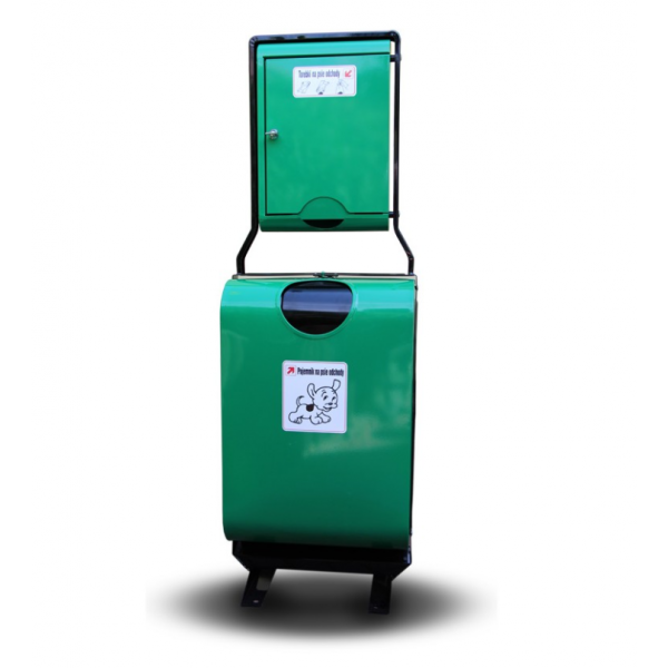 The dog waste bin with dispenser was designed with the comfort of users in mind. It has a chute hole with a tight flap protecting against unpleasant odors. It has a galvanized internal insert, which allows for easy and hygienic emptying. Access to the interior is only for authorized persons, as the dog station is locked with a lock and latch, after unlocking which you can remove the internal bucket.