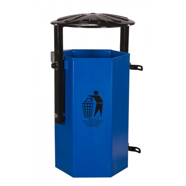 Street waste bin Emil 50 l made of galvanized sheet metal with a thickness of 1.5 mm. Both the Bin and the post on which the container is mounted are powder coated, which increases its resistance to changing weather conditions, the container does not undergo the process of corrosion. The bin has a canopy made of 2 mm sheet metal protecting the container from rain, wind and blowing out trash from the bin. The container can be equipped with an ashtray. Thanks to high-quality materials and high aesthetics of workmanship, the bin is not only nice but also durable. The bin is resistant to mechanical damage caused by, for example, acts of vandalism.