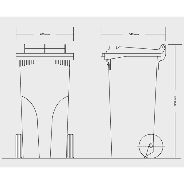 The Europlast waste container, with a capacity of 120 l, is a wheeled container, closed with a lid from the top. It is characterized by high quality of workmanship and materials used, as well as the characteristic uniform color of the entire container. The container has wheels placed on the sides of the container, which greatly improves its mobility, at the back of the container it has handles for easier and safer handling during emptying and servicing. The waste container can be used for storing municipal waste, for segregating waste such as plastic, paper, glass but also for storing hazardous materials. It is adapted for rear unloading, in accordance with the DIN standard.
