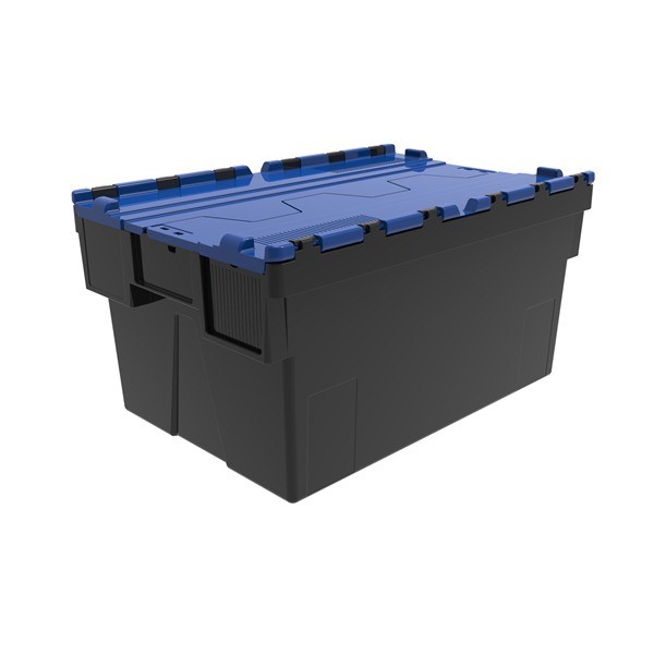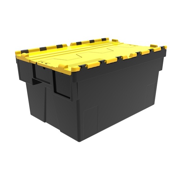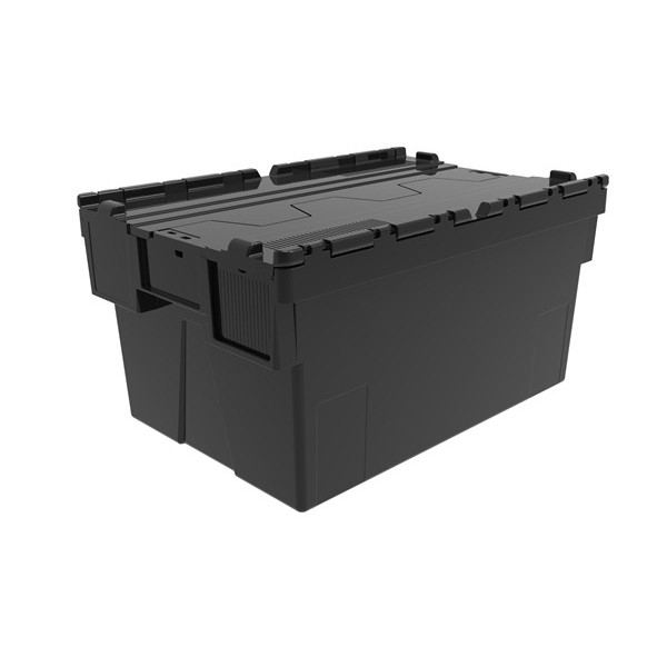 Stackable nestable crate, with a capacity of 52 L and wide application in industry. Ideal for storage and transport.