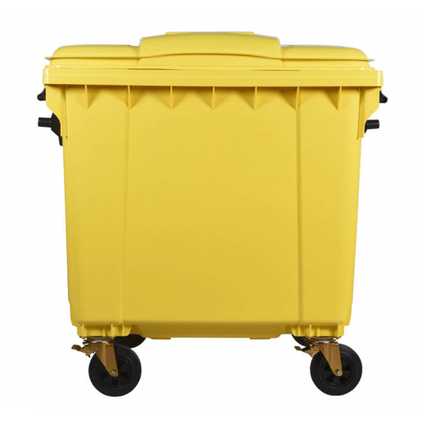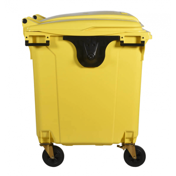 - The bin is resistant to UV rays and has a high temperature tolerance. The 1100L municipal waste container is intended for waste segregation outside in all weather conditions.