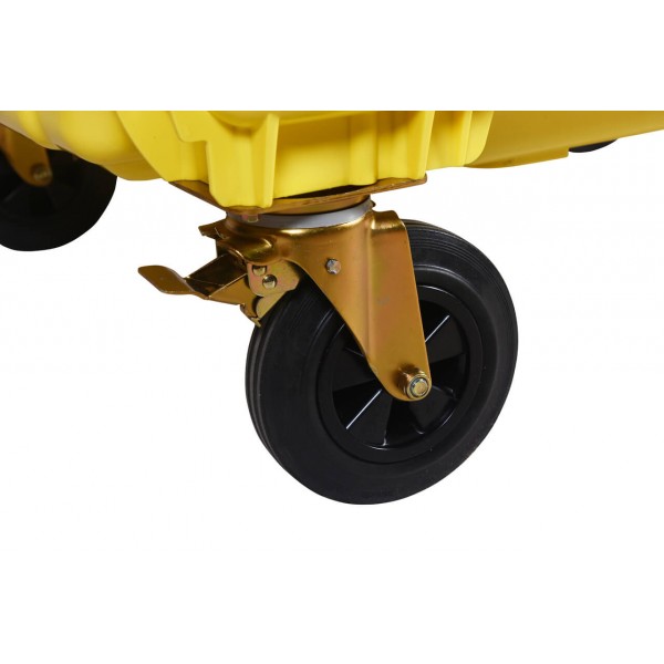 The yellow 1100L container of the German brand ESE is the most functional, durable and at the same time aesthetic outdoor waste bin available on the Polish market. The ESE container has a flat, light flap and a convenient set of four rubber wheels with an additional reinforcing cover and brakes on the front wheels, making it easy to use and quiet when moving.