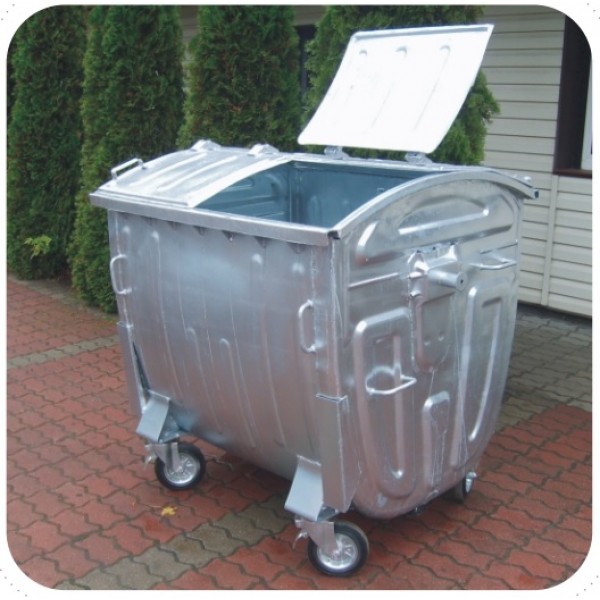 In our offer you will also find a 1100L metal container with a semi-circular flap.
